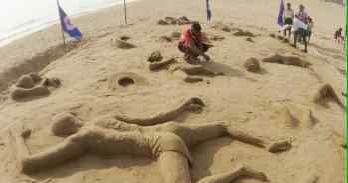 Image: A file photograph of artists spraying water on sand sculptures made to mark the fourth anniversary of the tsunami at Marina beach in Chennai on December 26, 2008