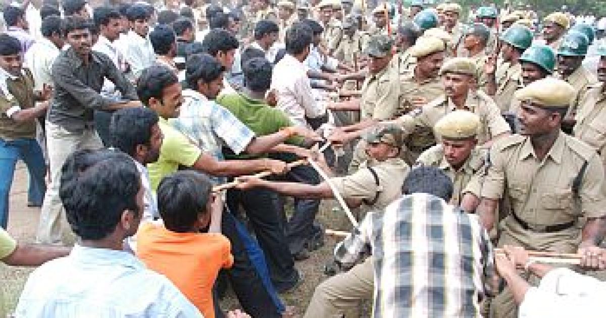 Image: Policemen clash with students of Sri Krishna Devraya University in Anantapur district on Tuesday