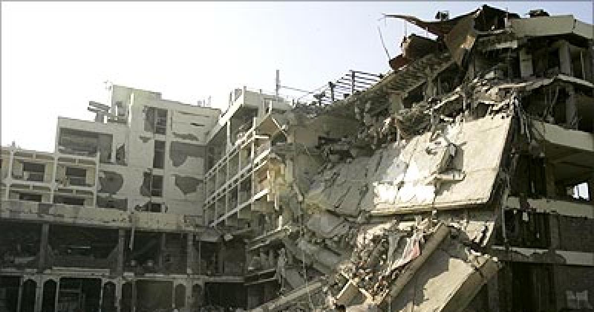A section of the Pearl Continental at the rear was reduced to rubble by the massive blast, which destroyed nearly 50 vehicles in the parking lot. The blast also damaged a nearby mosque and several other buildings.