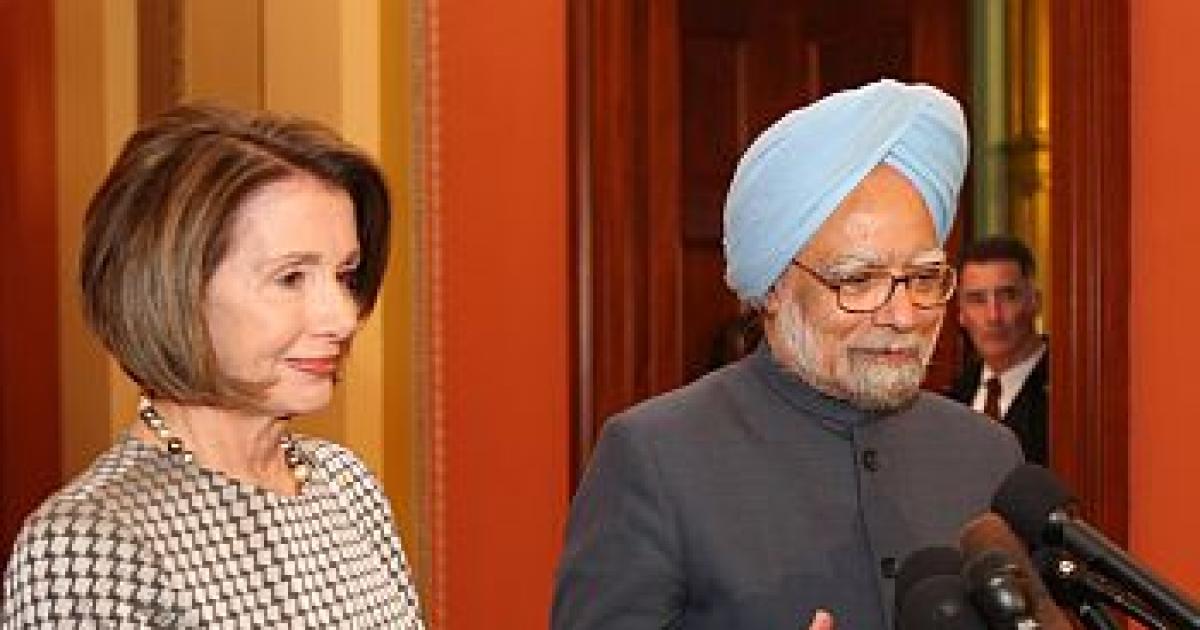 Image: Speaker of the House of Representatives Nancy Pelosi greets Prime Minister Dr Manmohan Singh at her office in Capitol Hill in Washington, Dc on Monday