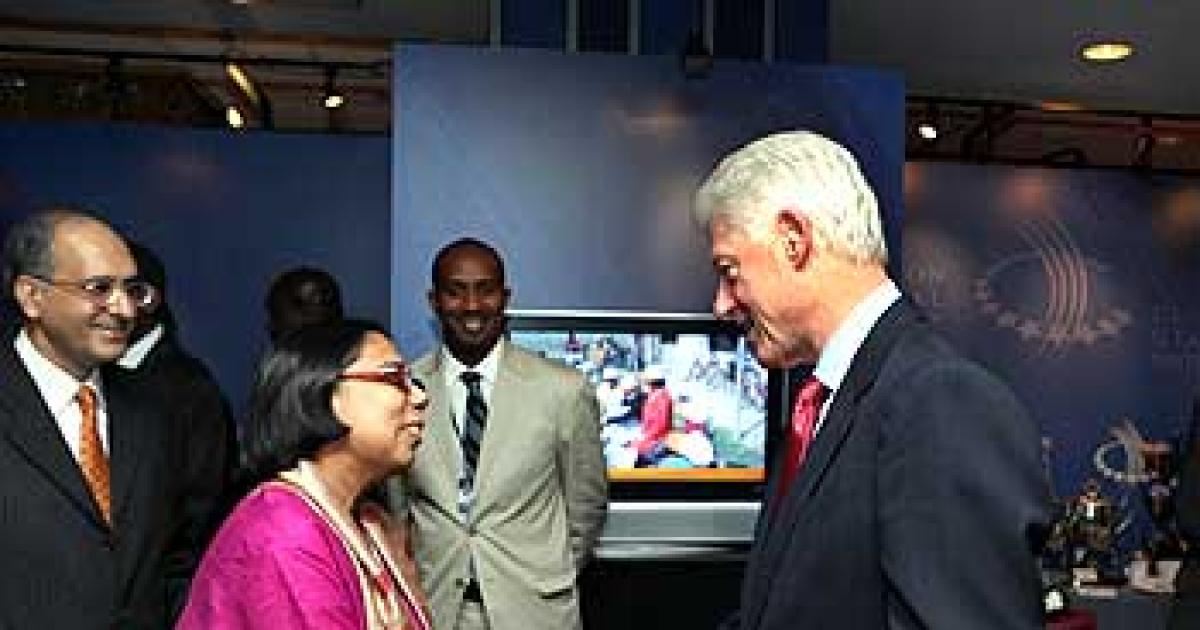 Image: Bill Clinton greets Ruchira Gupta at the function.