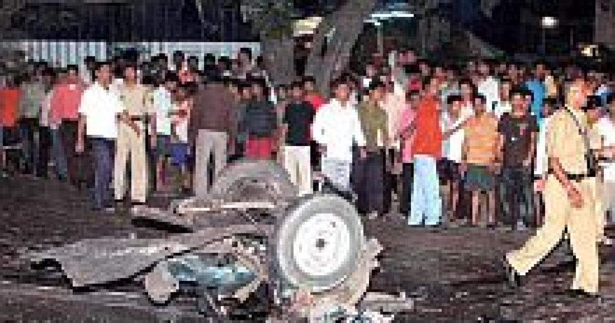 Image: The remains of the taxi on WEH in Mumbai on Nov 26, 2008
