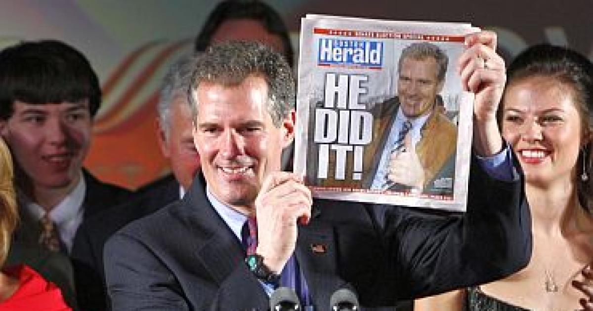 Image: Republican US Senator-elect Scott Brown holds up a copy of the Boston Herald announcing his victory over Democrat Martha Coakley in the US Senate race