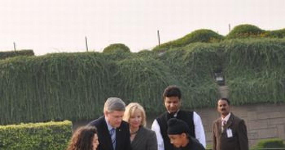 Canadian Prime Minister Stephen Harper and his wife Laureen visited Rajghat in New Delhi, where they laid a wreath on Mahatma Gandhi's memorial.