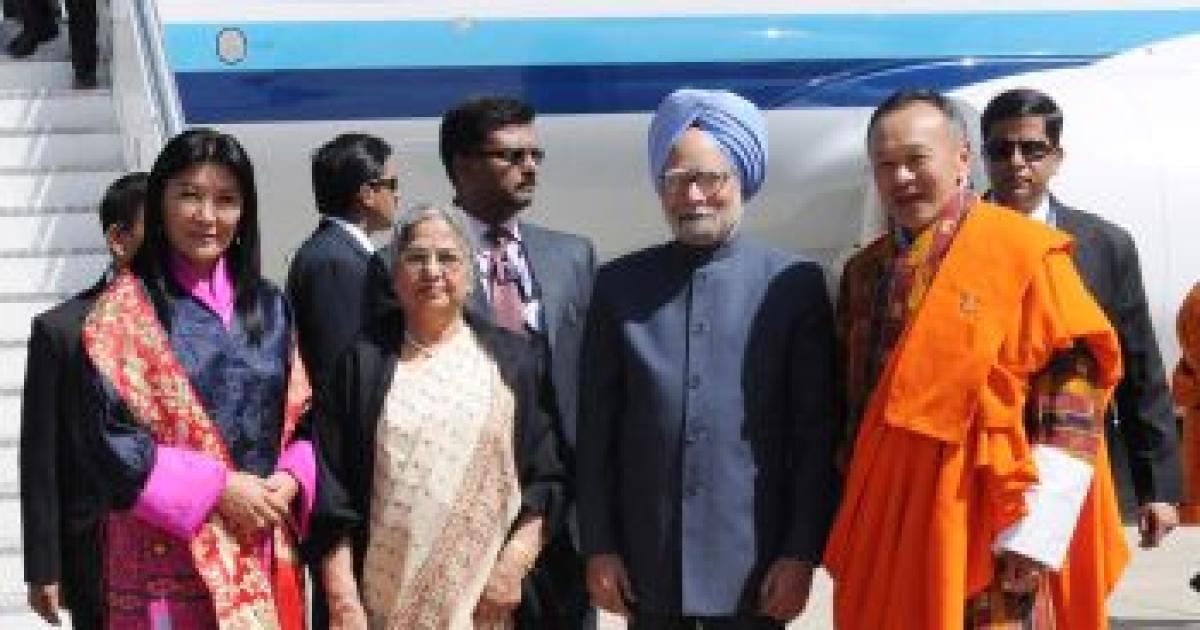 Image: Prime Minister Manmohan Singh and his wife Gursharan Kaur with the Prime Minister of Bhutan Lyonchhen Jigmi Y. Thinley at Paro International Airport in Bhutan on April 28 | Photograph courtesy: Press Information Bureau website